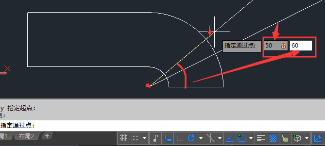 3、RAY指定通过点。也可以任意点。也可以设置参数,参数的设置的方法一般如@50<60。意思是绘制来的射线通过的点是50mm的位置。与水平成60度的角度。这种就是有规律性的。