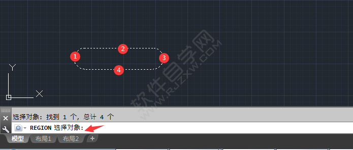 2、REGION选择对象,要选择闭合的所有对象。空格。