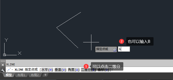 11、二等分模式,输入XLINE命令后,点击二等分(B)或是输入B空格。