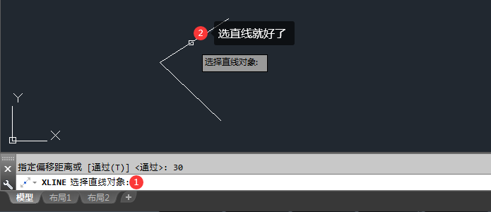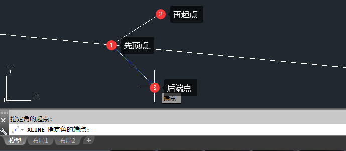7、也是一样点击任意一点作为XLINE指定通过点。