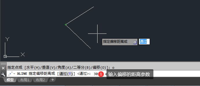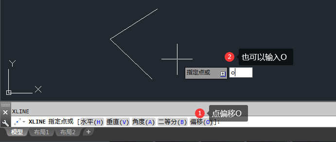 13、偏移模式,输入XLINE命令后,点击偏移(O)或是输入O空格。