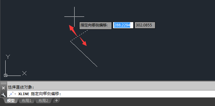 16、然后XLINE指定向哪侧偏移,有两个方向。这个要看你实际需要。