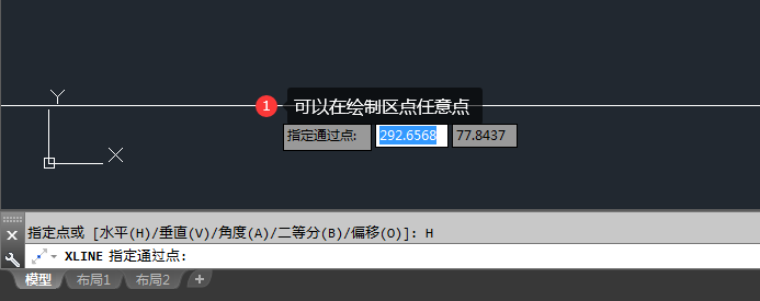 5、然后XLINE指定通过点,点击一下就创建了水平。