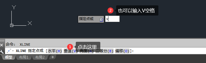6、垂直构造线模式:输入XLINE命令后,点击垂直(V)或是输入V空格。
