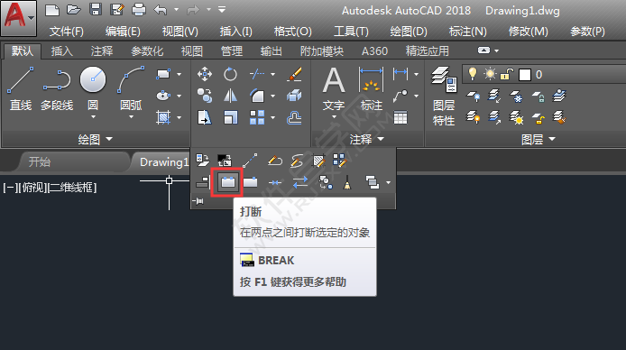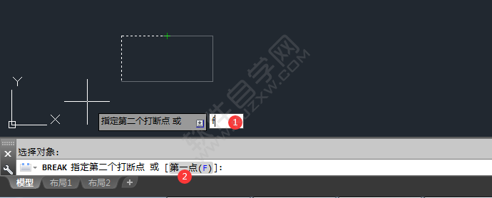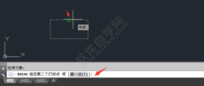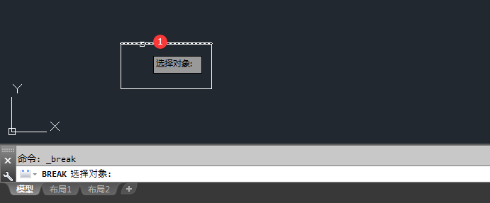 2、BREAK选择要打断的对象。空格。进入下一步。