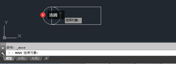 2、MOVE选择对象,选择圆形空格。进入下一步。