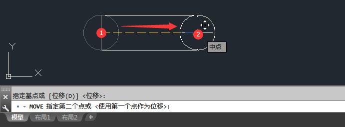 3、MOVE指定基点,可以捕捉中心。或是圆心点。空格下一步。