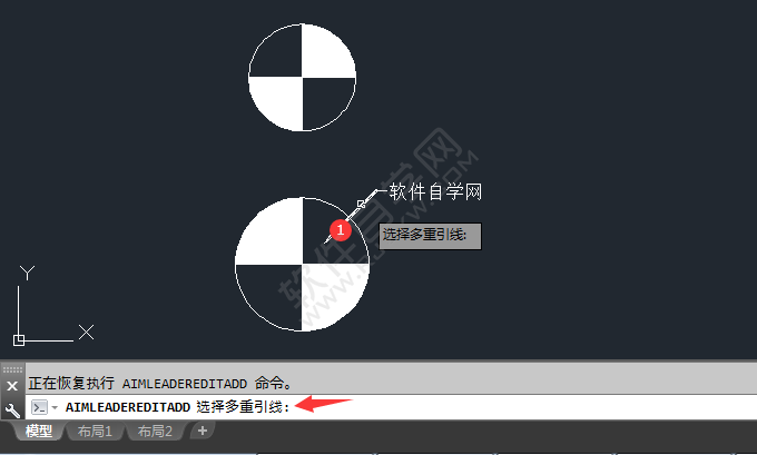 定义:MLEADEREDIT添加引线,将引线添加至现有的多重引对象。