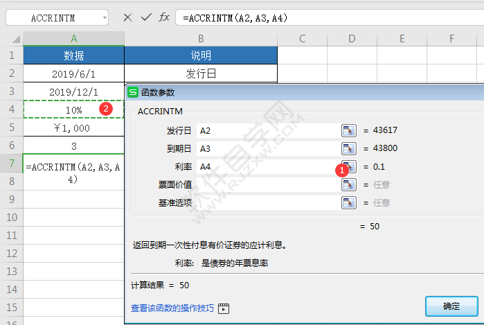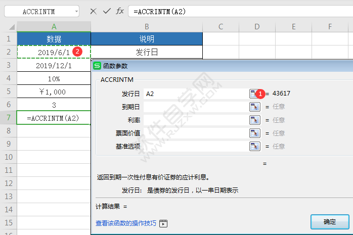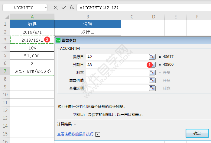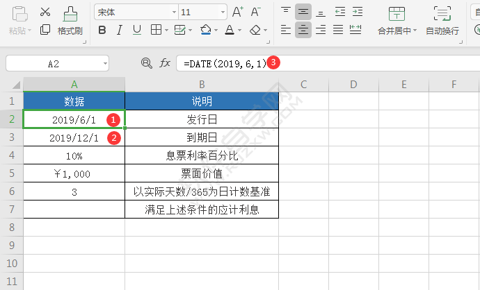 accrintm函数的使用方法:1、编辑好数据后,一定要注意的是日期要用DATE函数来输入日期。要不然会出错哦。