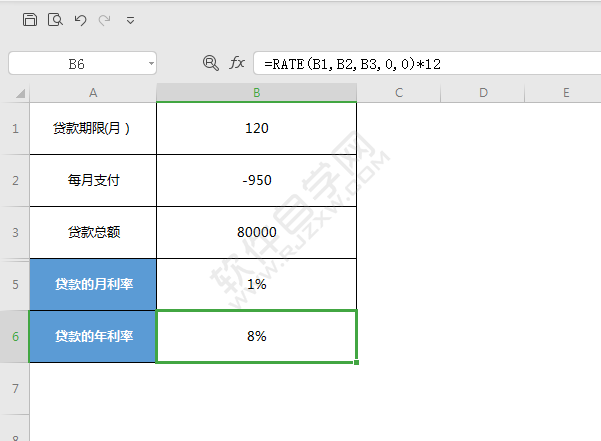5、如果要计算年率利,那就乘以12就好了,效果如下: