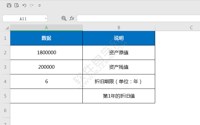 SYD函数的定义:SYD函数返回某项资产按年限总和折旧法计算的指定期间的折旧值。 SYD函数的语法:1、SYD(cost,salvage,life,per) 2、cost为资产原值。 3、salvage为资产在折旧期末的价值(也称为资产残值)。 4、life为折旧期限(有时也称作资产的使用寿命)。 5、per为期间,其单位与life相同。 SYD函数的使用方法:1、打开EXCEL软件,新建文档,输入下面表格的数据。效果如下: