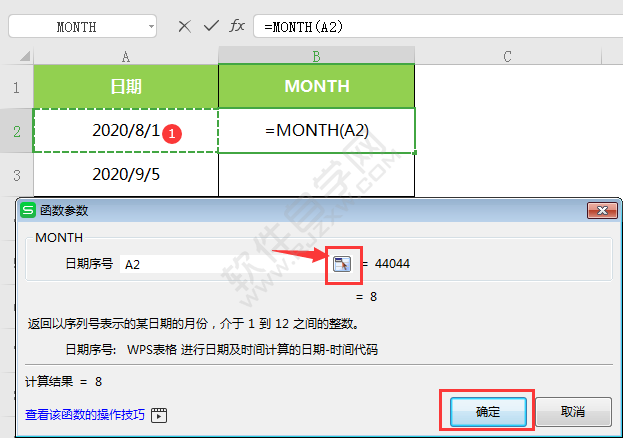 3、日期序号选择A2,点击确定,效果如下: