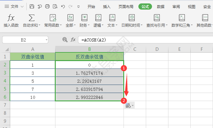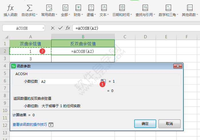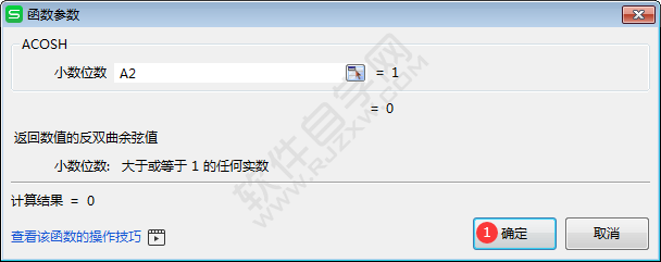 4、选好后,就会返回数值的反双曲余弦值。点击确定。