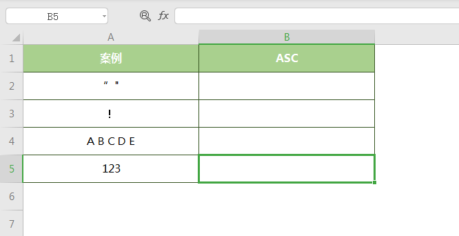 ASC函数的定义和语法:对于双字节字符集 (DBCS) 语言,将全角(双字节)英文字符更改为半角(单字节)字符。 语法:ASC(text),Text为文本或对包含要更改文本的单元格的引用。如果文本中不包含任何全角英文字母,则文本不会被更改。 ASC函数的使用方法:1、打开EXCEL软件,先做下面的数据出来,用于ASC函数来学习。