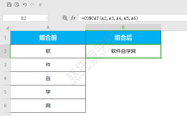 4、这样就可以把所有单元格的内容,组后起来。