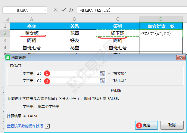 EXACT函数的定义与语法:该函数测试两个字符串是否完全相同。如果它们完全相同,则返回 TRUE;否则,返回 FALSE。函数 EXACT 能区分大小写,但忽略格式上的差异。利用函数 EXACT 可以测试输入文档内的文本。 EXACT函数的使用方法:1、在EXCEL中,输入下面的表格数据出来,效果如下: