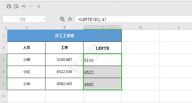 LEFTB函数基于所指定的字节数返回文本字符串中的第一个或前几个字符。此函数用于双字节字符。