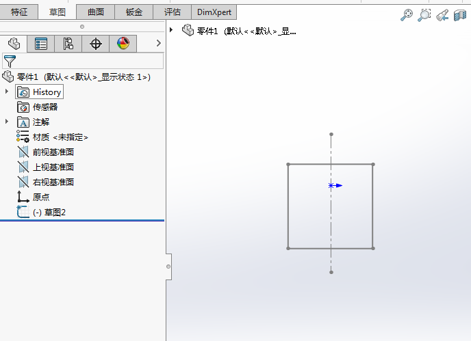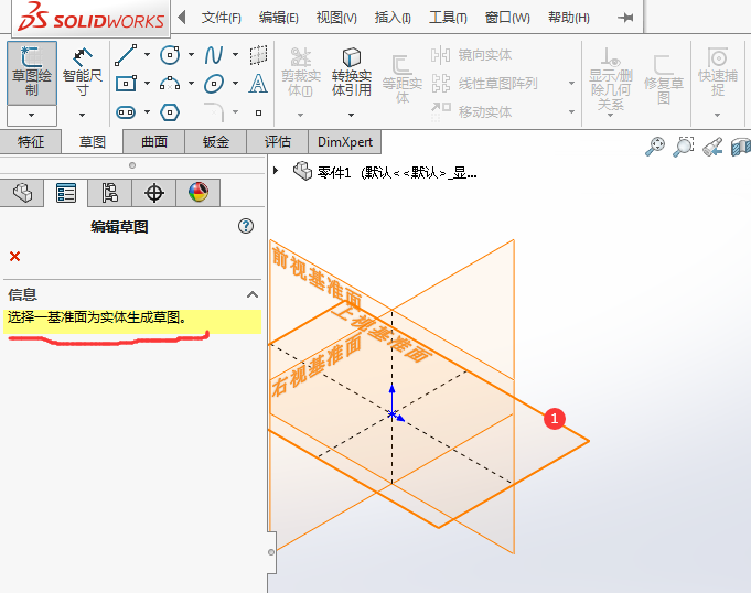 2、选择一基准面为实体生成草图。选择上视基准面。