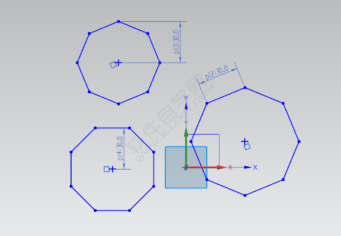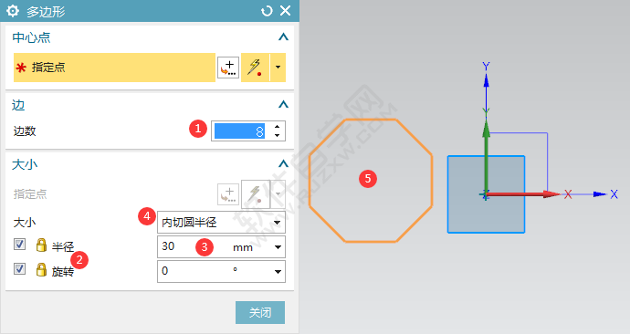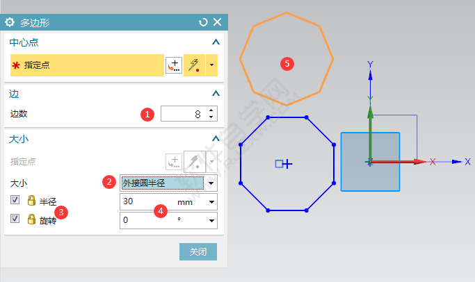 5、另一种是外接圆半径模式。设置半径与旋转角度,也是同样的指定多边形的中心点。