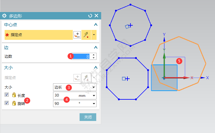 6、第三种是以边长的方法,设置好参数后,指定多边形的中心点。