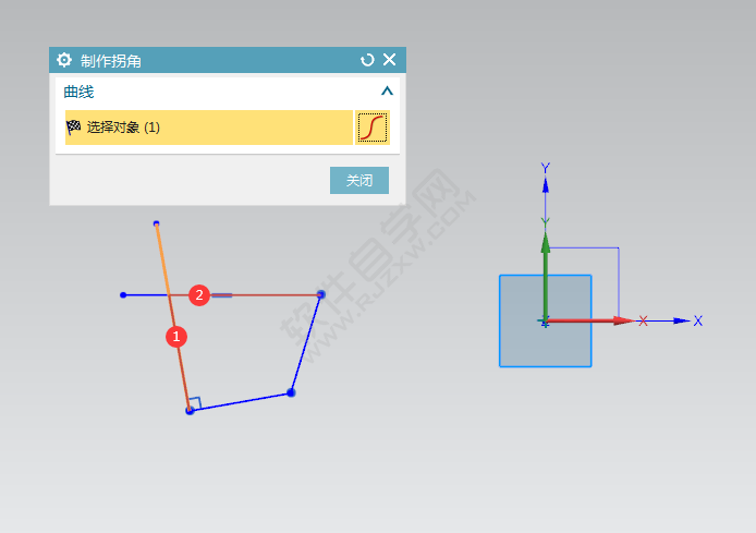 3、选择对象,选择草图要制作拐角的曲线。效果如下: