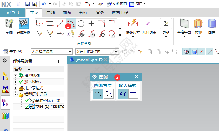 ug草图圆弧工具的用法:点击草图功能进入,选择创建草图基准面,点击圆弧工具,就可以创建圆弧了。 定义和用法:UG草图圆弧,通过三点或通过指定其中和端点创建圆弧。 ug草图圆弧工具的使用:1、点击主页菜单,点击草图功能。