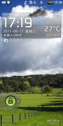 酷派9930搭载了Android2.2版本,虽不是最新的2.3系统,但相比更加成熟和稳定。有意思的是:在锁屏界面上,此手机教程由软件自学网首发,酷派9930采用的是将原生界面进行了一下修改,为单边拇指滑动模块。解锁之后,可见酷派9930的待机界面。在待机界面上,酷派9930也仅行了一下修改,带有酷派自己的智囊基因,给用户更实用、更华丽的界面设计。 ![]() ![]() 锁屏界面与待机界面 待机界面上其下面的四个菜单为常见的通讯录、拨号盘和短信和应用,待机界面一共拥有四页分屏。点击应用进入主菜单,主菜一共有5页,是小编喜欢的左右滑动模式。 ![]() ![]() 主菜单栏 在widget小插件上,也是酷派9930与Android原生和酷派之前的机型不一样的地方。酷派9930除了Android原生的那些插件之外,还支持应用壁纸更华,添加文件夹、相册小插件等。酷派也拥有自己的任务管理器,长按主页面键就是酷派9930的任务管理器。 在下拉菜单上,酷派9930拥有WLAN、蓝牙、GPS、重力感应器、亮度等设置。