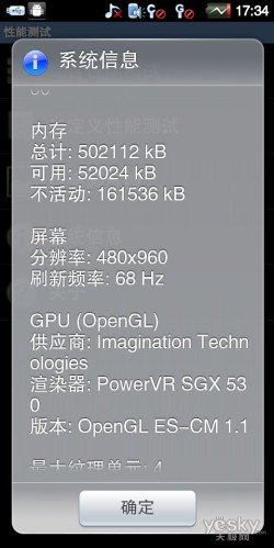 在硬件配置上,酷派9930采用了cortexA8规范1GHZ主频的CPU——德州仪器OMAP 3630,搭载的GPU为PowerVR SGX530。512M的RAM运行内存,系统为Android 2.2的系统,屏幕分辨率为960x480。内置电子罗盘、GPS、光线、距离等多种传感器,而且是款双网双待手机,支持电信的C网和移动、联通的2G的 GSM网络,整体配置十分主流。下面,我就用软件来验证下。 ![]() 性能测试结果 从分数结果上来看,酷派9930的分数为744分,不高,也不低,而且还要考虑到其屏幕为960x480的高分辨率会拉低分数的情况,因此可以说酷派9930的性能还是很不错的,而且酷派9930是款主打的双网双待的商务智能手机,其用户群对超高的硬件也并不是十分在乎。 ![]() 系统信息 下面,小编则对智能手机最终要的部分——屏幕,小编用两个软件进行下测试。首先我用MultiTouch_Tester软件进行测试可以看见酷派 9930能完美支持5点触控。在通过pointerlocation软件全屏幕划线测试可以看到,其线条还是比较平稳的,中间、边角和四周都没有死角,没有失灵的情况发生。抖动幅度越大则代表着触控误差越大。