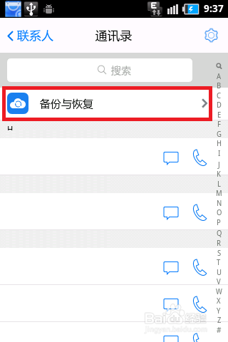 在“通讯录”界面中,点击“备份与恢复”按钮。