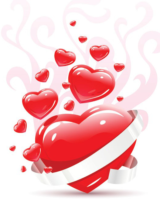 EPS格式,含JPG预览图,关键字:红心,传送爱情,情书封面,水晶立体心形,丝带,心心相印,矢量素材