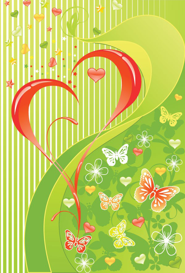 EPS格式,含JPG预览图,关键字:红色爱心桃,花边,星星,蝴蝶,花朵,形象生动的心形花纹,矢量素材