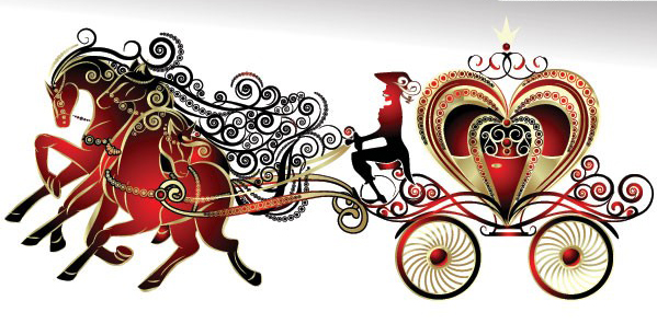 PS格式,含JPG预览图,关键字:华丽,马车,人物,心形马车,花纹,花边,矢量素材。