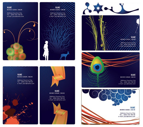 EPS格式,含JPG预览图,关键字:矢量卡片,潮流元素,时尚个性,墨迹,丝带,抽象人物,孔雀羽毛,设计素材,动感线条,卡片,模板,矢量素材