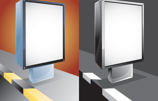 EPS格式,含JPG预览图,关键字:矢量,广告灯箱,马路,路边,广告牌模板,写实,彩色,黑白,