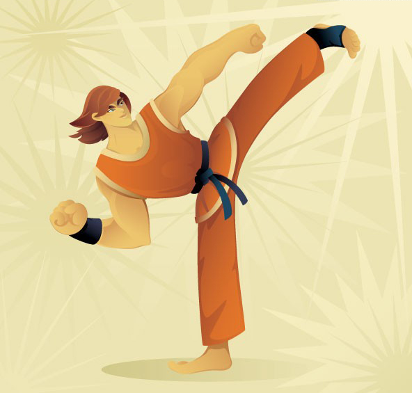 EPS格式,含JPG预览图,关键字:矢量运动,跆拳道,卡通,人物,跆拳道服,体育运动,矢量素材