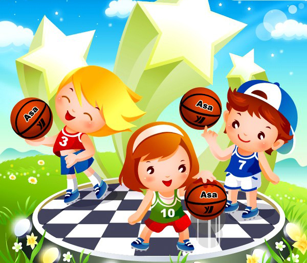 可爱卡通儿童篮球运动