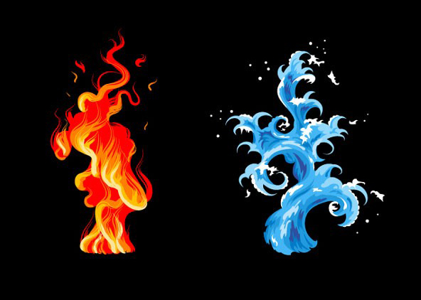 EPS格式,含JPG预览图,潮流,矢量,水,火,浪花,波浪,火焰,火苗,烈火,燃烧,矢量素材