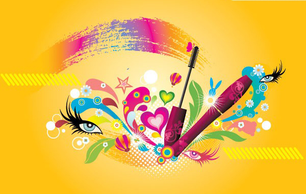 EPS格式,含JPG预览图,化妆,矢量,彩妆,缤纷,潮流元素,化妆用品,女性,眼睛,睫毛膏,唇膏,心形,植物花卉,矢量素材