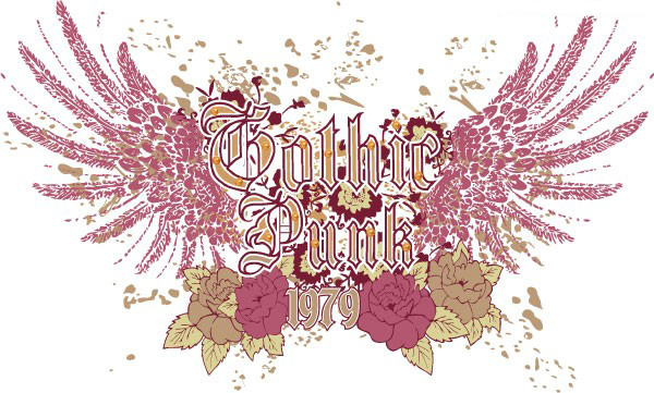 AI格式,含JPG预览图,潮流图案,T恤图案,矢量,怀旧风格,翅膀,花朵,墨迹,1979,矢量素材