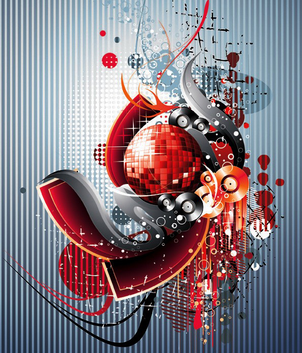 EPS格式,含JPG预览图,矢量潮流,潮流元素,disco,迪厅,音乐,黑胶碟,水晶灯,竖线,光芒,音响,潮流插画,矢量素材