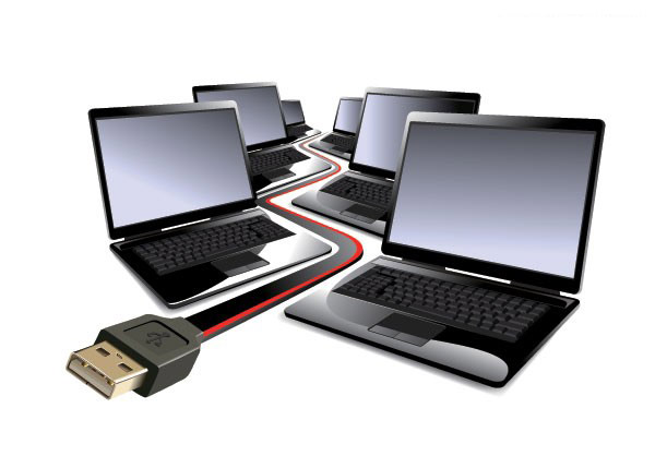 EPS格式,含JPG预览图,关键字:矢量,笔记本,科技时代,手提电脑,USB线,USB接口,矢量素材