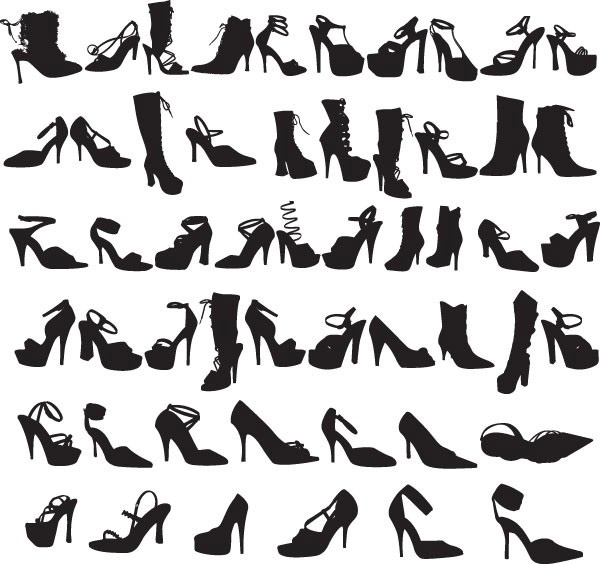 EPS格式,含JPG预览图,矢量鞋子,女鞋,高跟鞋,靴子,凉鞋,剪影,时尚,矢量素材...