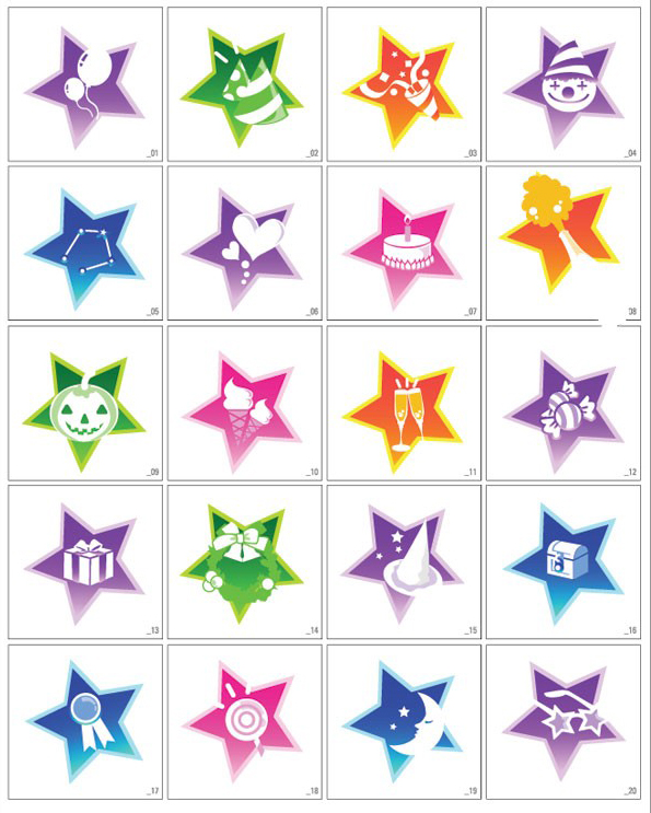 AI格式,含JPG预览图,气球,蛋糕,礼物,月亮,心,小丑,冰激凌,万圣节,糖果,矢量素材