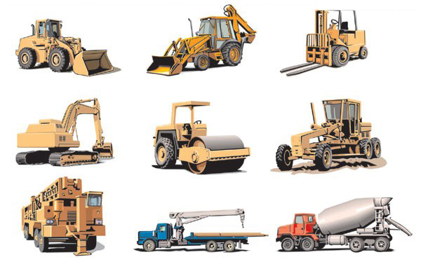 CDR格式,含JPG预览图,重型车,工地,交通工具,机械车,矢量,挖土机,轧路机,吊车,搅拌机,矢量素材...
