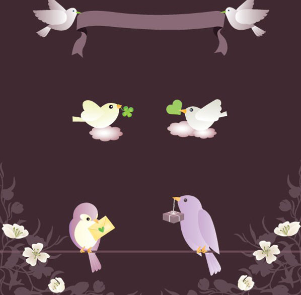AI格式,含JPG预览图,矢量动物,鸟类,小鸟,花朵,送信,banner,信件,礼物,心形绿叶,矢量素材... │ Twinsen