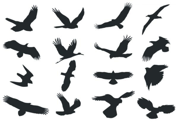 CDR格式,含JPG预览图,关键字:矢量,动物,飞鸟,鸟类,剪影,鹰,海鸥,仙鹤,鸽子,大雁,燕子,飞翔,矢量素材