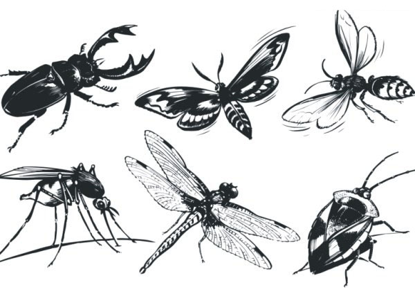 CDR格式,含JPG预览图,矢量昆虫,黑白,甲虫,蛾子,蚊子,蜻蜓,蜜蜂,臭虫,精致,矢量素材