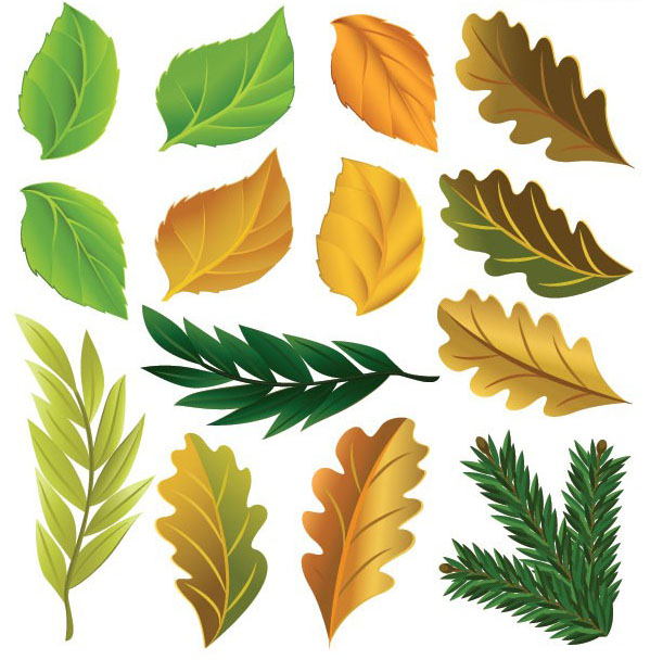 EPS格式,含JPG预览图,植物矢量素材,矢量树叶,色彩缤纷,春天,秋天,桃树叶,杨树叶,柳树叶,绿色,黄色,矢量素材