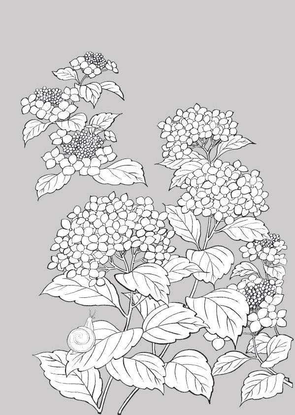 紫阳花与蜗牛线描植物花卉