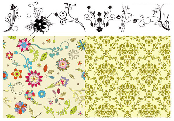 EPS格式,含JPG预览图,花纹,鲜花,植物,花朵,背景,平铺背景,连续背景,叶子,树藤,矢量素材...